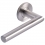 Pour porte d'épaisseur 40 à 55 mm. Résistance à la corrosion 240 h au brouillard salin. Ensemble en acier Inoxydable AISI 304, solidarisé avec ressort de soutien. Fixation traversante par vis M4 et bouchon anti rotation. Livrée avec visserie de pose. Rosaces fines d'épaisseur 6 mm, arrêtes vives pour un design moderne. Dimension rosace ovale : 70 x 32 mm Entraxe de fixation rosace ovale : 50 mm Dimension rosace ronde : Ø 53 mm Entraxe de fixation rosace ronde : 38 mm Fouillot carré : 8 mm Finition : inox brossé Conditionnement : boite