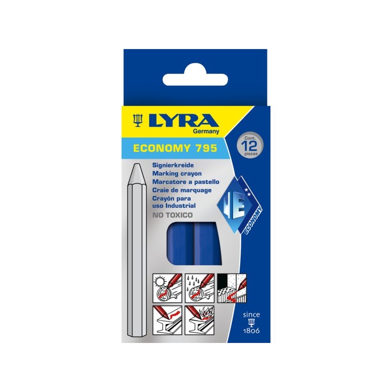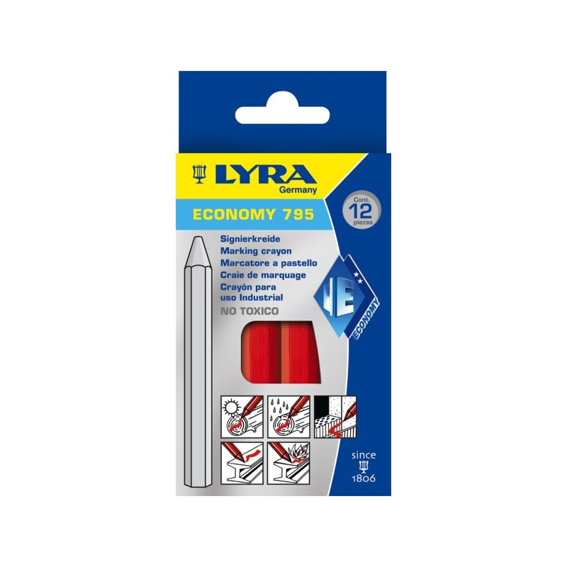 Craie de marquage sur bois, métal, pierre. Forme hexagonale Ø 11 mm, longueur 110 mm. Conditionnement : boîte de 12