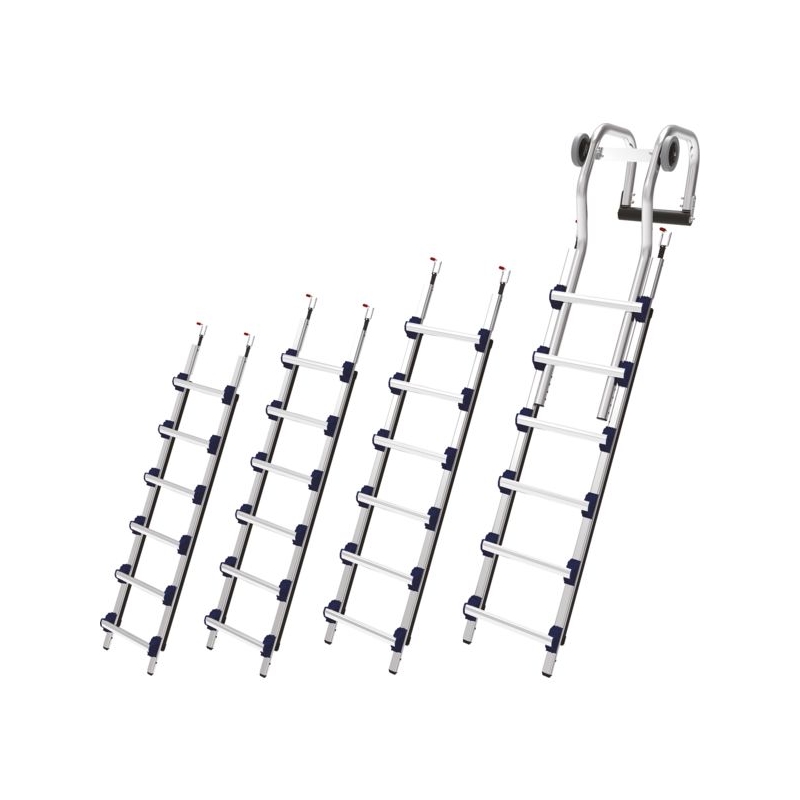 Pour le couvreur, usage intensif. En aluminium. Pack complet composé de 4 échelles + 1 crochet de faîtage. Chaque entraxe permet de s'adapter sur les différentes formes de tuiles et d'inclinaison de pente.
