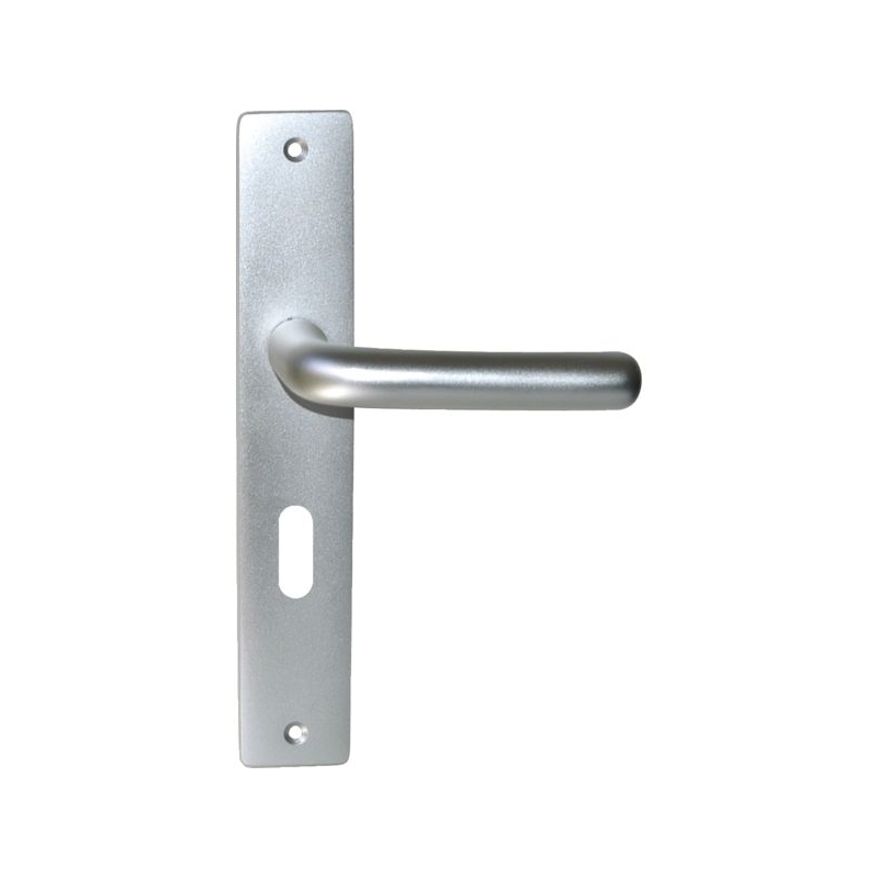 Pour porte intérieure d'épaisseur 40 à 50 mm. Béquille de forme U se terminant avec un retour coudé. Plaque : 220 x 39 mm Épaisseur plaque : 7 mm Entraxe de fixation : 195 mm Entraxe de serrure : 70 mm Longueur béquille : 110 mm Saillie de la béquille : 60 mm Fouillot carré : 7 mm Matière : Aluminium Finition : Naturel perlé Conditionnement : boîte 100% recyclable.